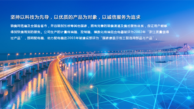 浙江大明電器有限公司,主要經(jīng)營照明配電箱、動力控制箱及電器元件等,是集設(shè)計(jì)、生產(chǎn)、銷售為一體的股份制企業(yè)。公司自創(chuàng)立以來就堅(jiān)持“質(zhì)量為本,服務(wù)至上”的原則,在不斷提高產(chǎn)品的技術(shù)含量的同時(shí),全面貫徹執(zhí)行…